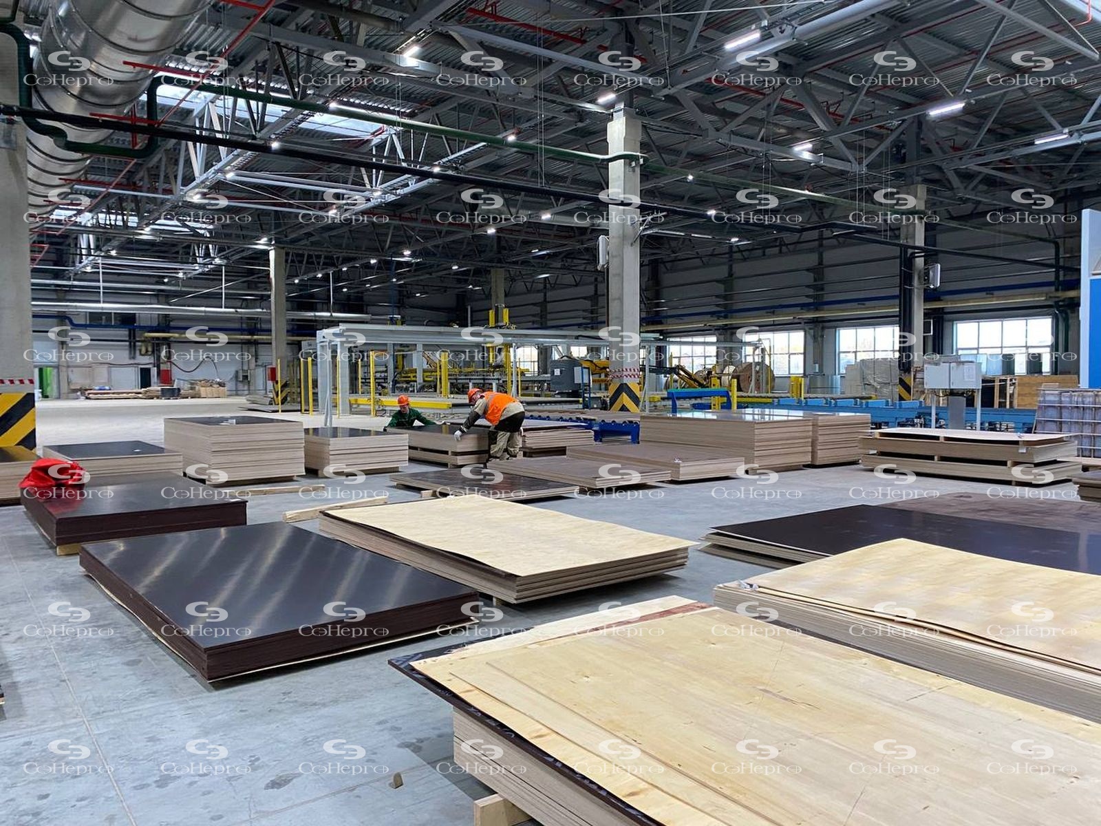 Это первые в России производство фанеры размера «макси» (7х13 футов). Проектная мощность – 125 тыс.кв.м. куб. м продукции в год.